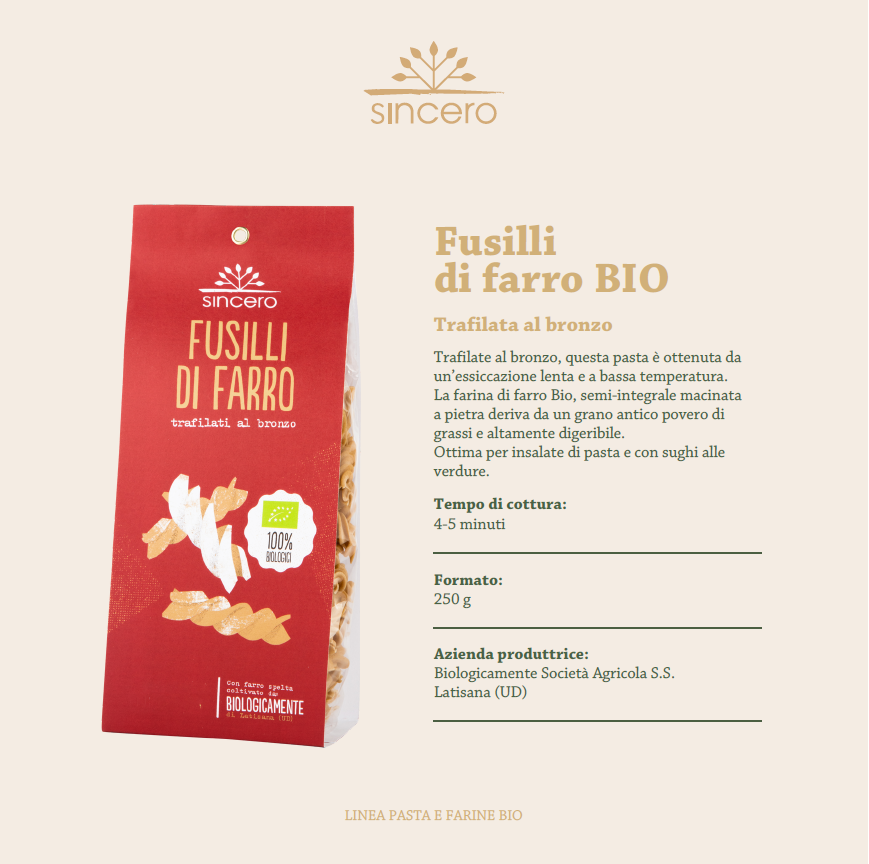 Fusilli al farro gr 250 Sincero Food
